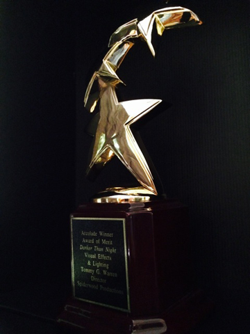 Spiderwood Productions has won the prestigious Award of Merit in Visual Effects and Lighting from The Accolade Competition. The award was given for the trailer, Darker Than Night, for the feature film to be shot at Spiderwood Studios. Director, Tommy G. Warren was quoted as to saying, "It's very exciting to have such an award for Visual Effects of a trailer production, just think how exciting it will be when the full story unfolds. This SyFi thriller will no doubt keep the audience on the edge of their seats."